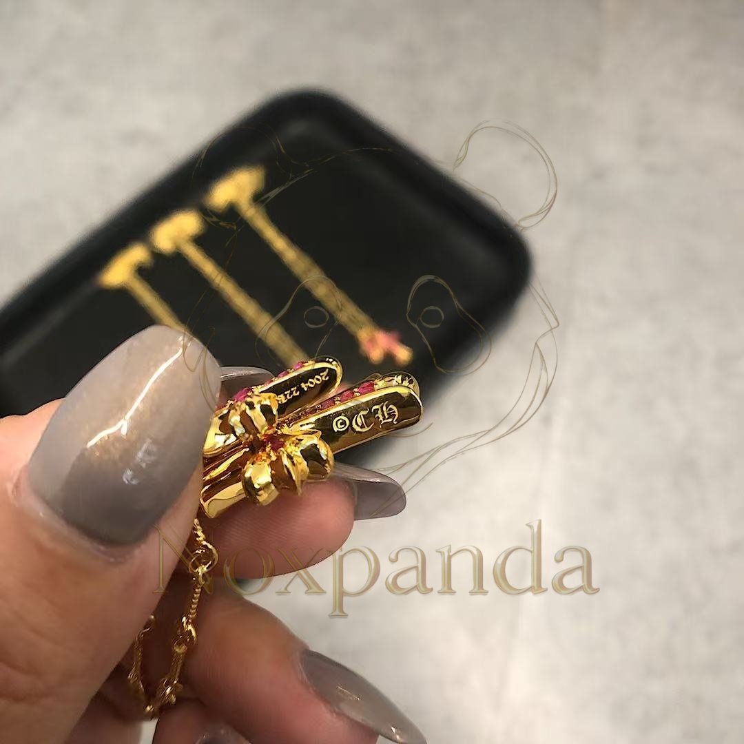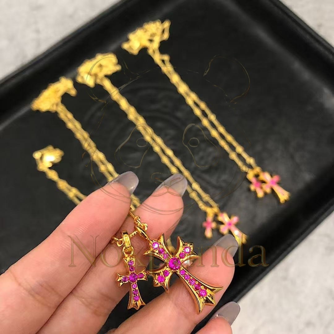 Chrome hearts 22k Gold-Plated Red Diamond Double Cross Necklace quantity