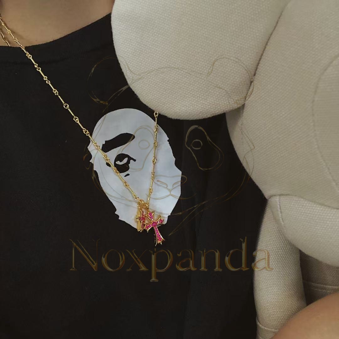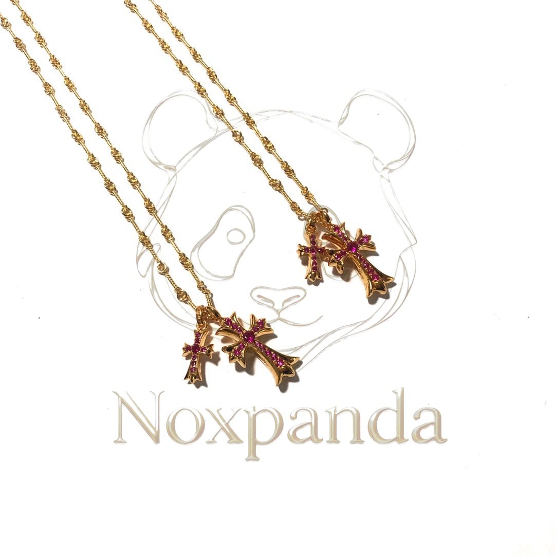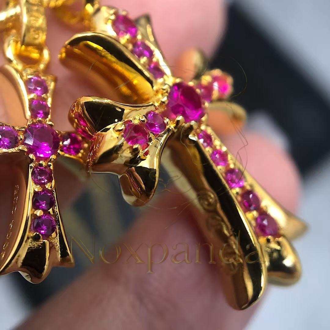 Home / Collection / Chrome hearts 22k Gold-Plated Red Diamond Double Cross Necklace