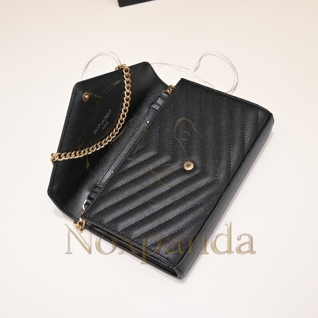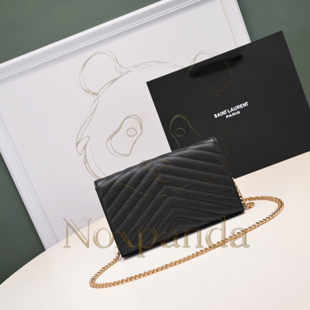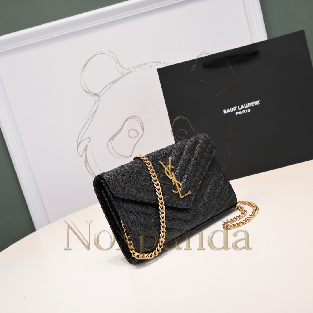 YSL CASSANDRE ENVELOPE CHAIN WALLET IN GRAIN DE POUDRE LEATHER 393953BOW011000 (19*11.5*4cm)